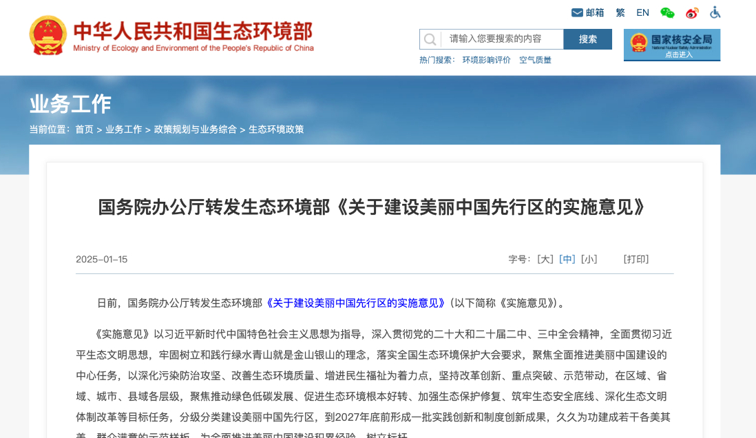 国务院办公厅转发生态环境部《关于建设美丽中国先行区的实施意见》的通知日前,国务院办公厅转发生态环境部《关于建设美丽中国先行区的实施意见》(以下简称《实施意见》)。查看更多