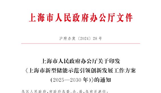 上海市人民政府办公厅关于印发《上海市新型储能示范引领创新发展工作方案(2025—2030年)》的通知《上海市新型储能示范引领创新发展工作方案(2025—2030年)》已经市政府同意,现印发给你们,请认真按照执行。查看更多 -